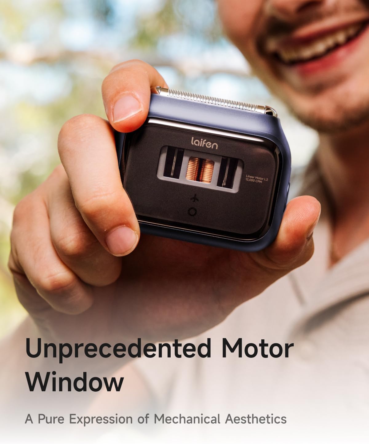 [Unprecedented Motor Window ] The world’s first CNC-crafted aerospace-grade aluminum shaver, featuring Apple-grade sandblasting for a durable, smooth matte finish. Its pocket-sized cuboid design includes a supercar-inspired “Motor Window,” showcasing Laifen’s iconic motor in action for the first time.