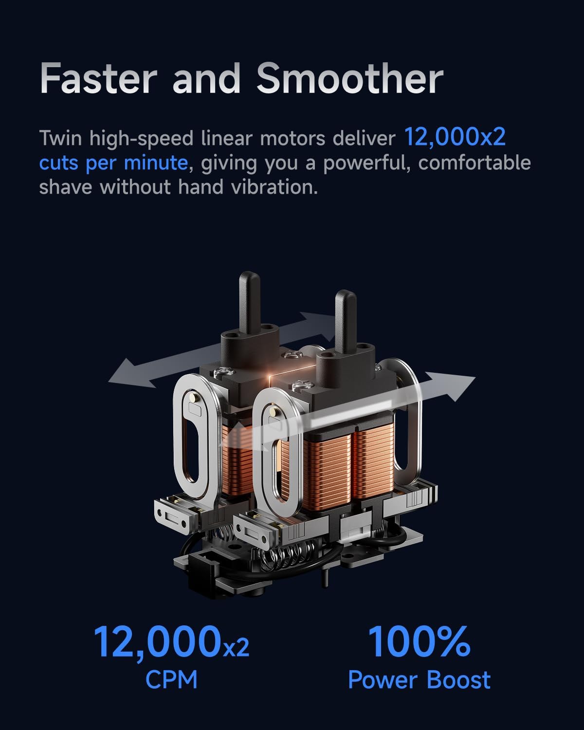 [Powerful Linear Motors] The world’s 1st dual-drive linear motor delivers 12,000 cuts per minute, tackling coarse and stubborn beards with ease. Real-time power adjustment ensures a smooth, tug-free shave. The 0.055mm* ultra-thin foil and precision stainless steel blades enhance efficiency, while dual shock absorption provides a steady, comfortable grip. *Half the thickness of an A4 sheet of paper.